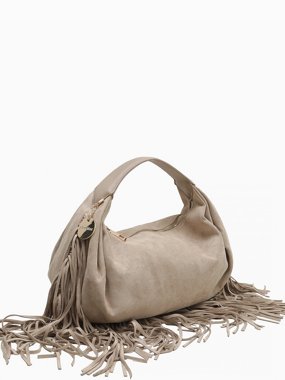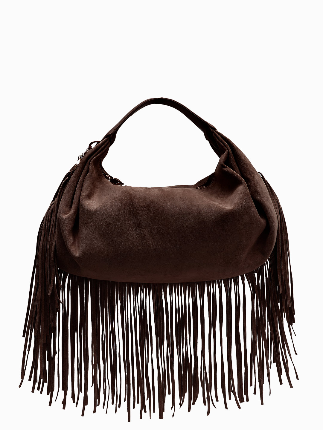 Сумка-мешок с бахромой по бокам от Alex Max из замши кофейного цвета max4602-C coffe