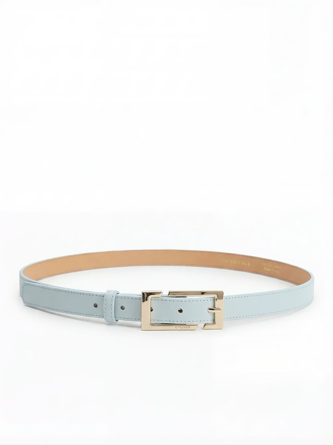 Узкий женский ремень от Cromia с пряжкой прямоугольной формы из натуральной кожи голубого цвета рcr2700287 cristallo