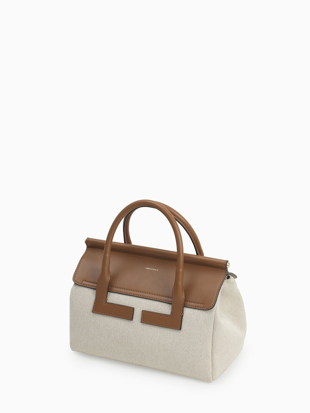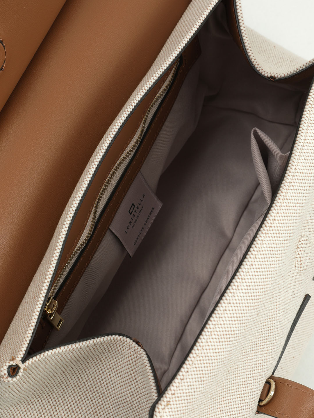 Небольшая классическая сумка с клапаном от Loristella в из бежевого текстиля и рыжей натуральной кожи ls3021-CA isabella naturale cookies
